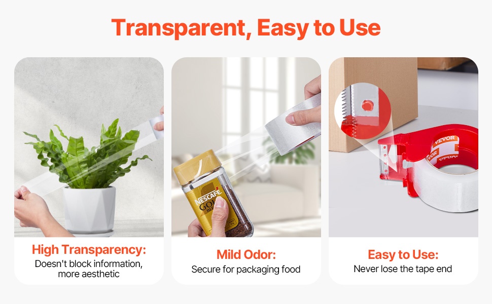 Teippi on erittäin kirkas, joten se ei peitä tärkeitä tekstejä tai viivakoodeja. Hajun taso on maltillinen, mikä tekee pakkaamisesta miellyttävämpää ja siistimpää.