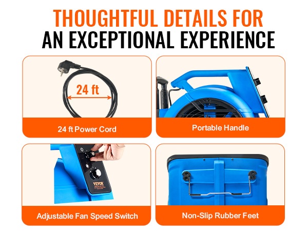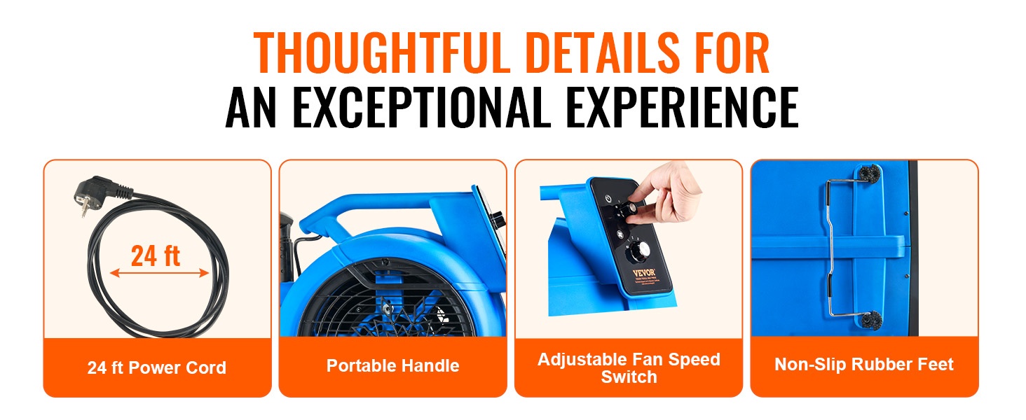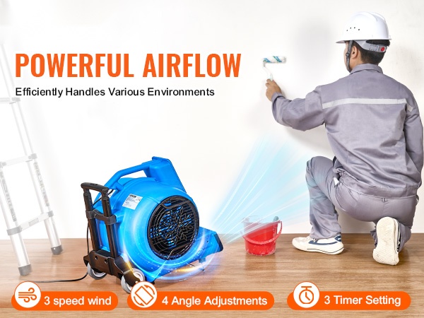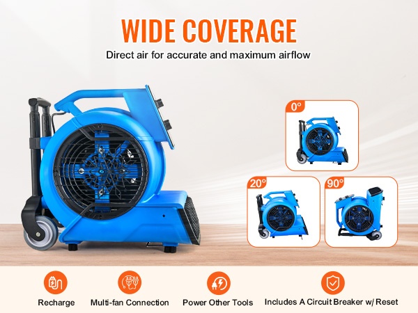 Voimakas ilmavirta auttaa vastaamaan monenlaisiin olosuhteisiin, kuten märkiin lattioihin, kosteisiin kellareihin tai tiloihin, jotka tarvitsevat lisäviilennystä. Monikulmainen puhallus ja säädettävät nopeudet helpottavat erilaisten pintojen ja tilojen käsittelyä.
