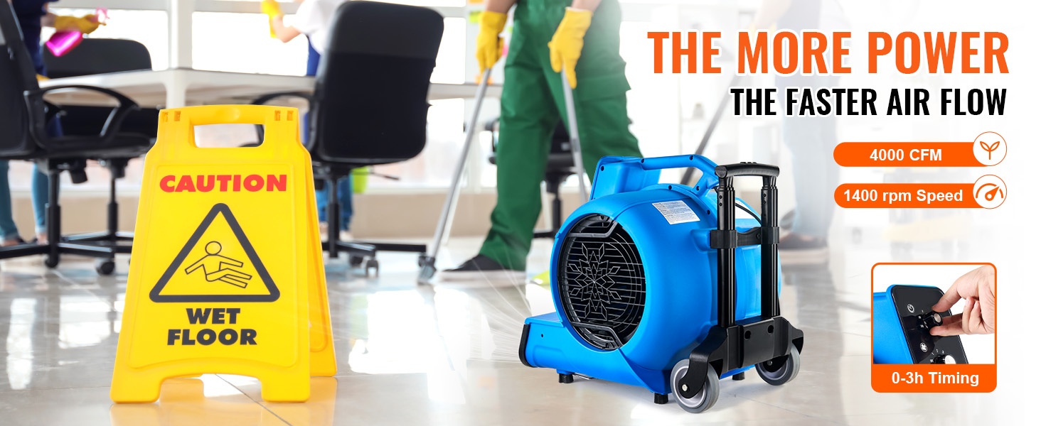 Puhallin palauttaa kosteat lattiat ja matot nopeasti kuiviksi poistamalla kosteuden tehokkaalla ilmavirralla. Se soveltuu hyvin siivouksen viimeistelyyn, vesivahinkojen jälkikuivaukseen, märkätiloihin ja tiloihin, joissa kosteutta kertyy helposti.