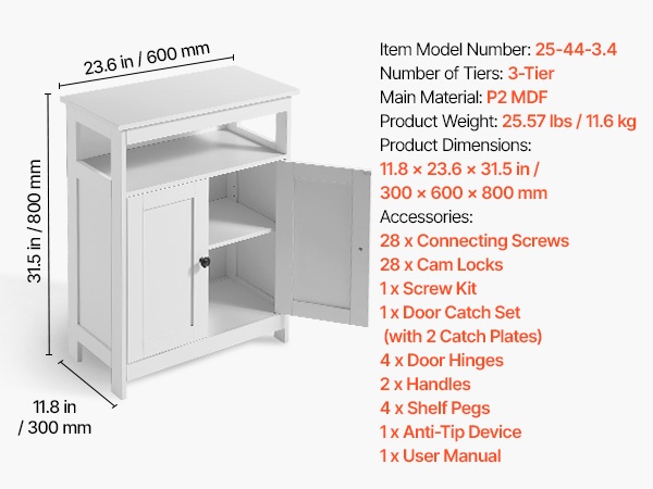 - Tuotteen mitat: 11.8 x 23.6 x 43.3 in / 300 x 600 x 1100 mm