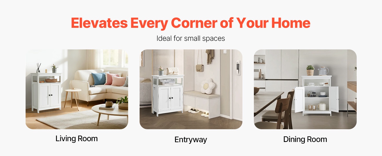 Tilava säilytysrakenne hyödyntää jokaisen käytettävissä olevan senttimetrin. Kaappi sopii erityisesti kylpyhuoneen tarvikkeille, mutta toimii hyvin myös eteisessä tai olohuoneessa pienten tavaroiden, tekstiilien ja kodin tarvikkeiden säilytykseen.