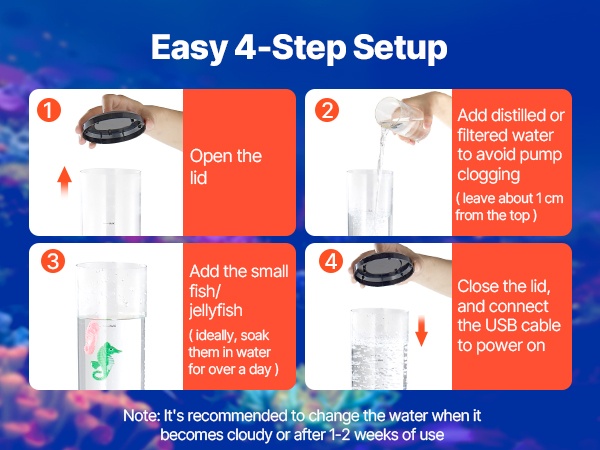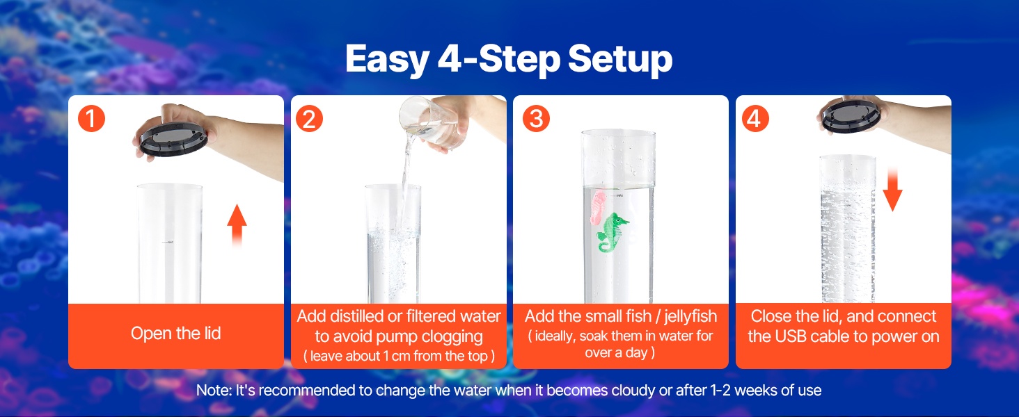 Värikkäät valot ja nousevat kuplat tuovat vedenalaisen maailman tunnelman sisätiloihin. Lamppu auttaa luomaan rauhallisen, aisteja aktivoivan ympäristön, joka sopii sekä lapsille että aikuisille.