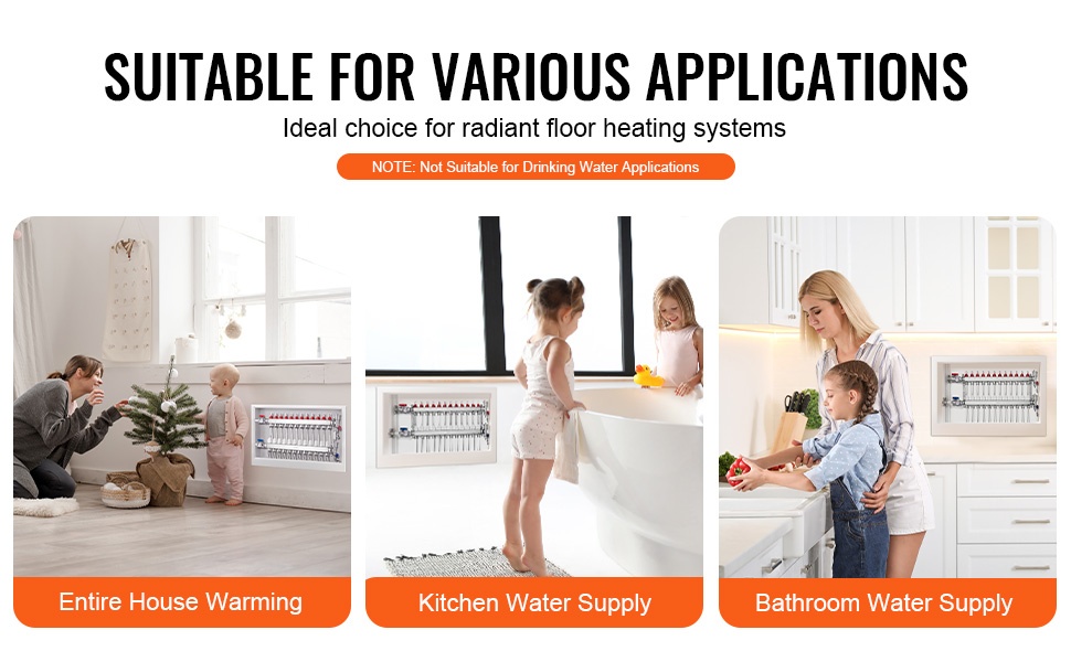 7-haarainen lattialämmityksen jakosarja on suunniteltu 1.27 cm PEX-putkille. Ruostumattomasta SUS304-teräksestä valmistettu rakenne kestää hyvin korkeita lämpötiloja ja korroosiota, ja jakaa lämpimän veden tasaisesti eri lämmityspiireihin.