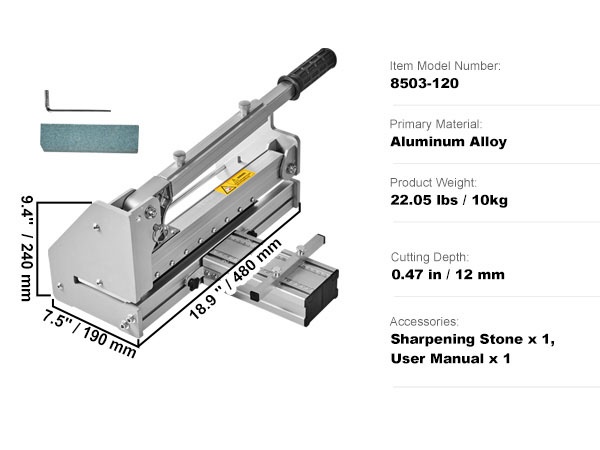 Lattialevyleikkuri alumiiniseosrunko 330 mm leikkausleveys 12 mm leikkaussyvyys vinyylille ja laminaatille