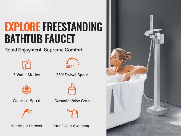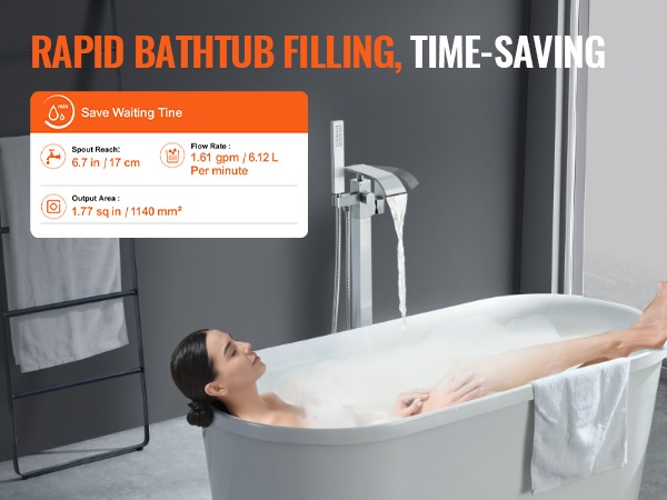 - Nopea täyttö: suuri virtaus 1.61gpm / 6.12L minuutissa täyttää kylpyammeen nopeasti.