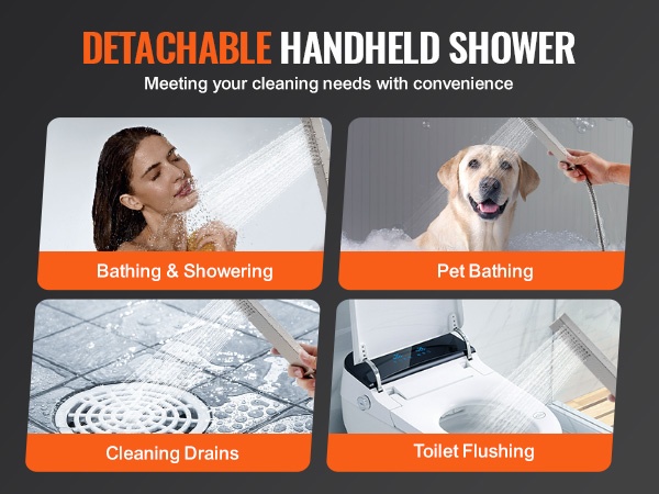- Kaksitoiminen käsisuihku: kaksi vesivirtaustilaa eri käyttötarpeisiin, kuten suihkussa käyntiin, vauvan tai lemmikin pesuun.