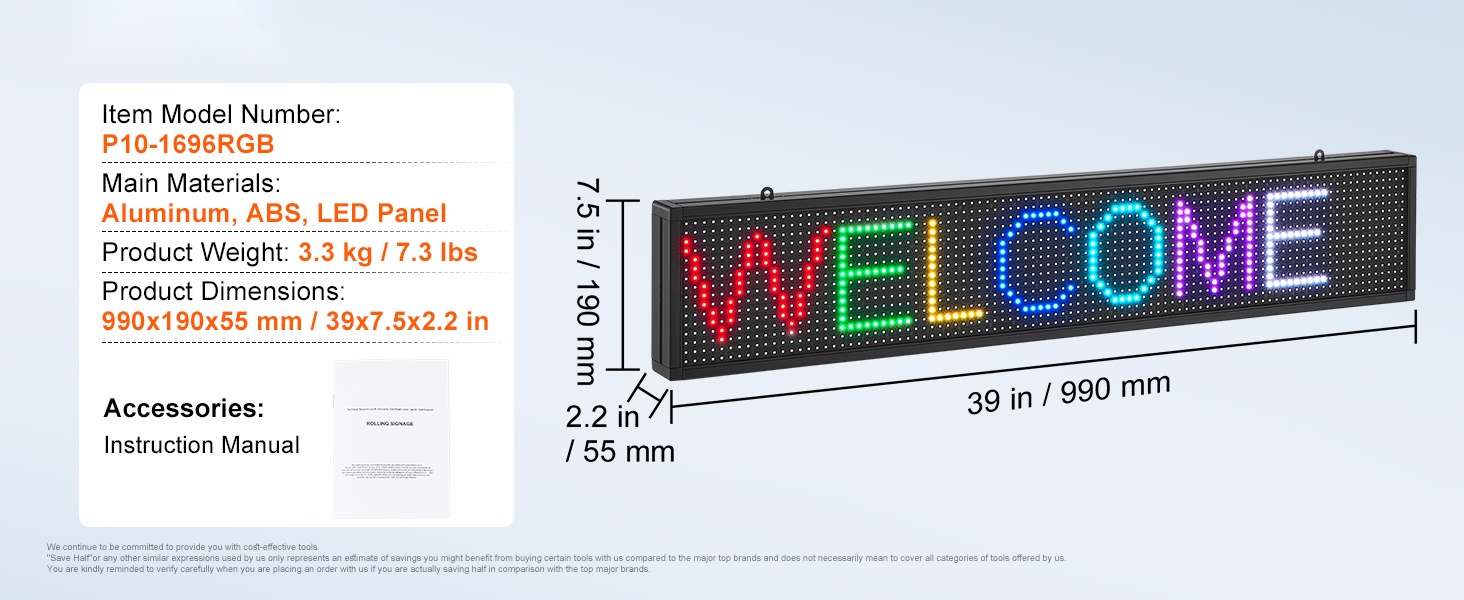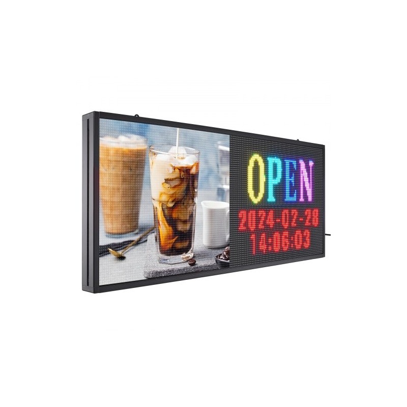 Ohjelmoitava täysvärinen LED-mainoskyltti tuo liiketilaasi elävää väriä ja selkeää viestintää. Vierivä LED-paneeli sopii sekä sisäkäyttöön että näyteikkunaan, ja siihen voi luoda omia tekstejä, animaatioita ja kuvioita tietokoneella tai puhelimella.