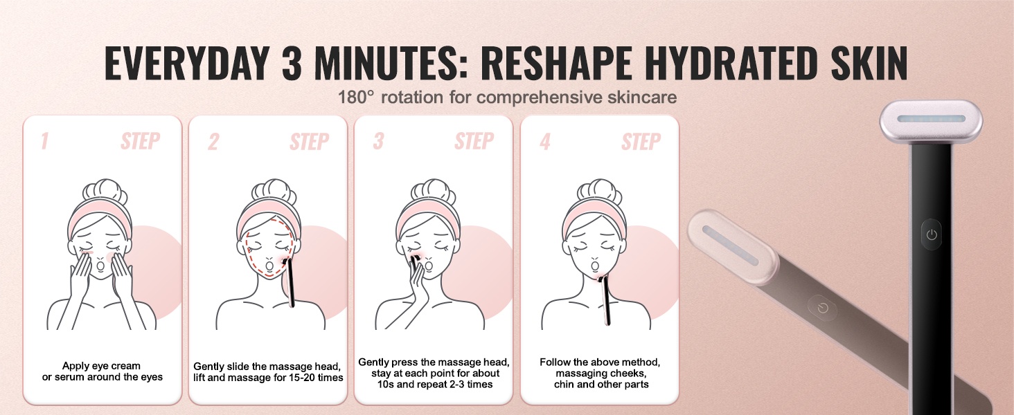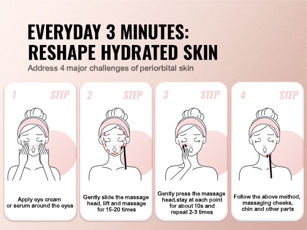 Jatkuva lämpöhoito yhdessä mikrovirtavärinähieronnan kanssa on suunnattu erityisesti silmänympärysalueen yleisille haasteille. Ne voivat tukea verenkiertoa, edistää mikroverenkiertoa silmien ympärillä, lievittää silmien rasitusta ja auttaa vähentämään tummia silmänalusia.