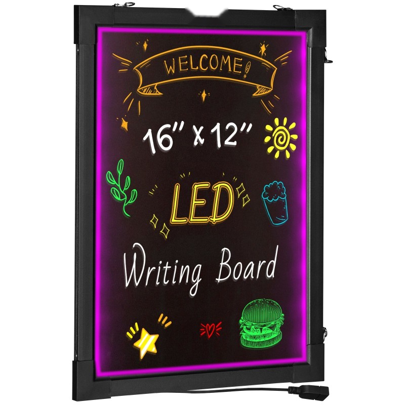 Monivärinen LED-viestitaulu, jossa on karkaistu lasipinta ja seinäkiinnitys. Sopii esimerkiksi ravintoloihin, kahviloihin, kauppoihin, tapahtumiin, häihin tai kotiin viestien, tarjousten ja piirrosten esillepanoon.