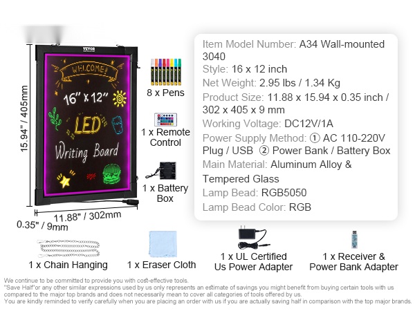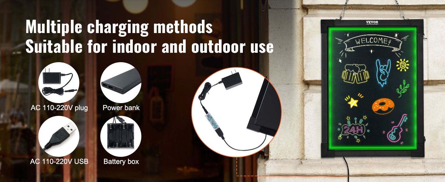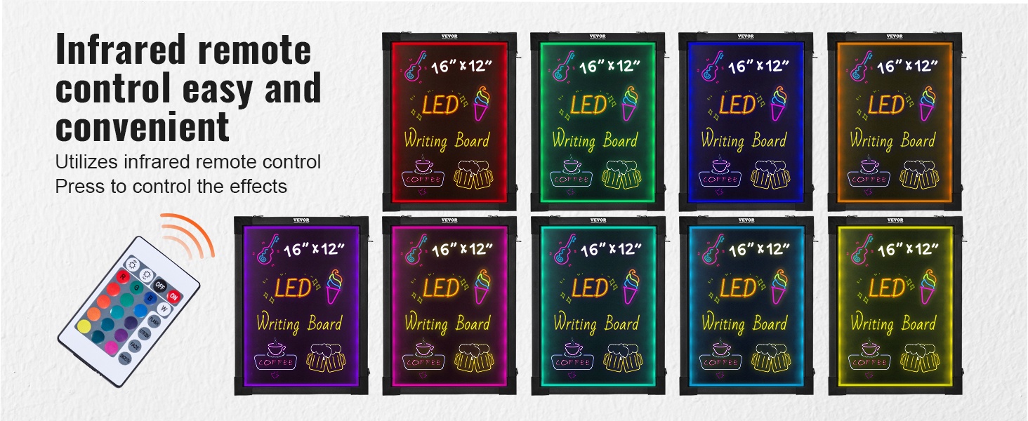 - Tulostustila: pyyhittävä LED-liitutaulu, helppo kirjoittaa ja pyyhkiä