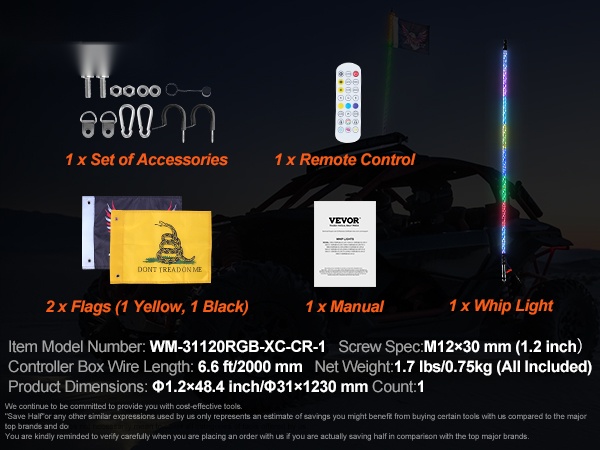 - Whip-valot: 2 PCS, 4 FT