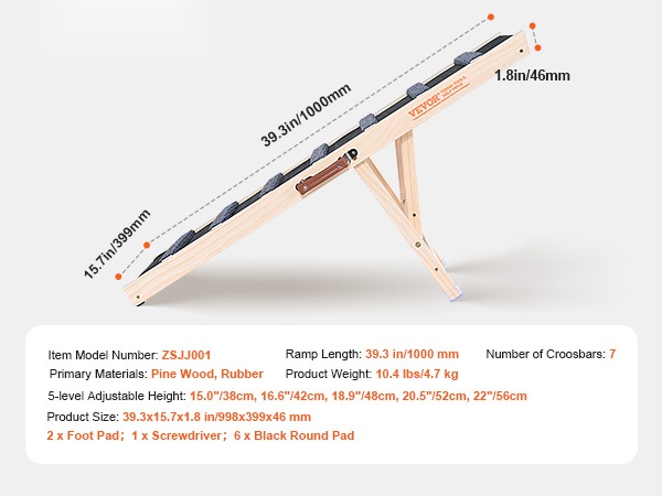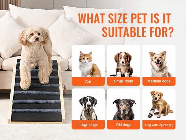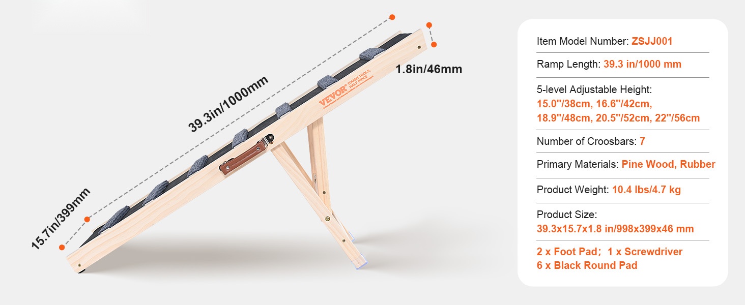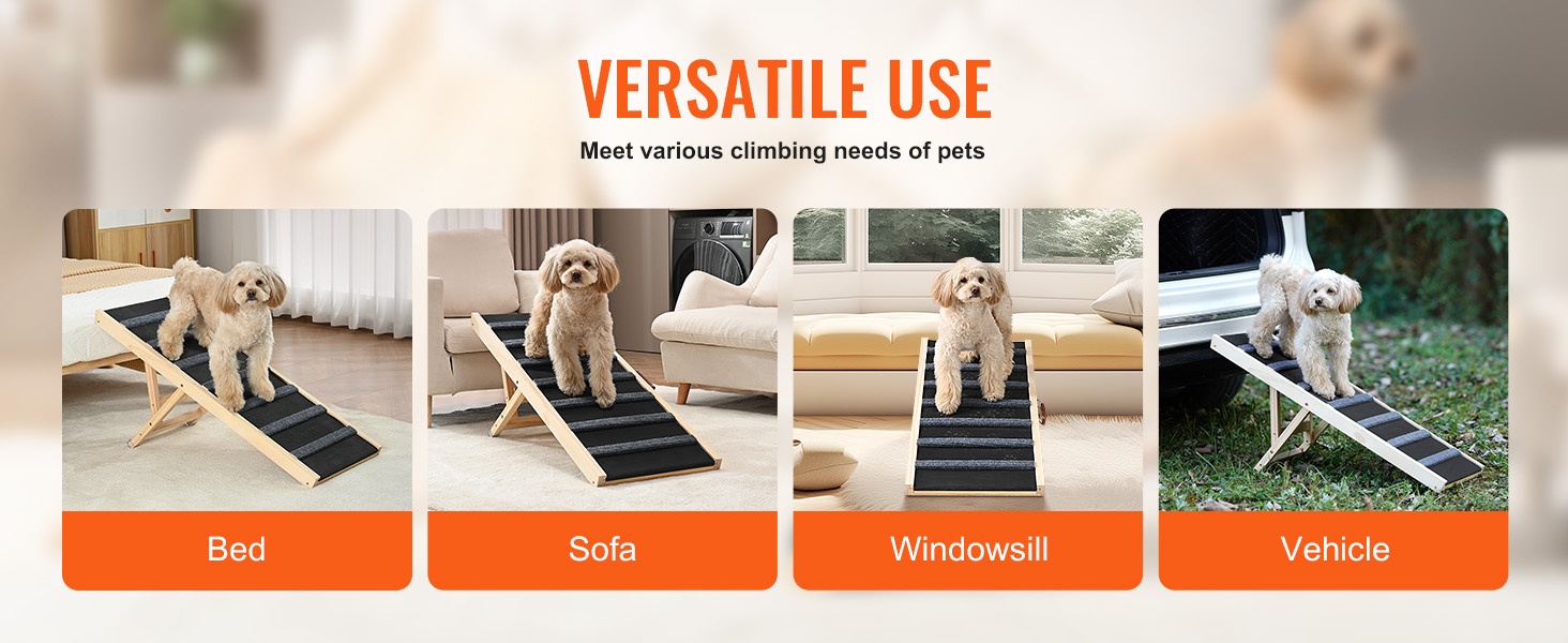 39.3-tuumainen pituus ja 5-portainen korkeussäätö helpottavat lemmikkiäsi pääsemään turvallisesti sängylle, sohvalle, ikkunalaudalle sekä autoon sisään ja ulos.