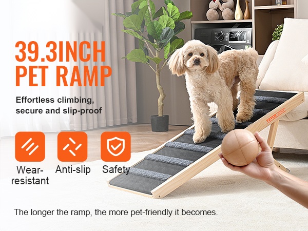 39.3-tuumainen lemmikkiramppi tarjoaa koirallesi ja kissallesi miellyttävän ja turvallisen kulkureitin esimerkiksi sohvalle, sängylle tai autoon. Kestävä ja liukumaton kumipinta antaa hyvän pidon ja auttaa ehkäisemään lipsahtamisia rampilla.