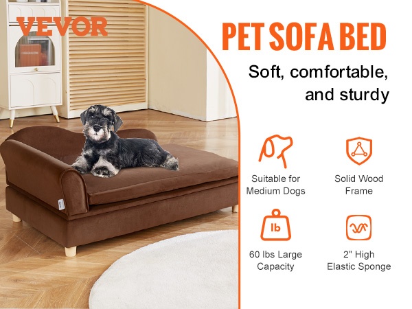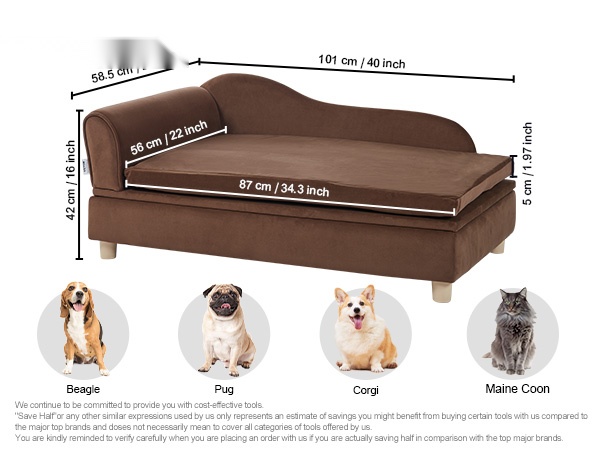 Tämä lemmikkisohva tarjoaa miellyttävän ja tukevan lepoalustan keskikokoisille koirille ja kissoille. Pehmeä nahkapintainen kangas, paksu vaahtotäyte ja tukeva puurunko tekevät siitä viihtyisän paikan, jossa lemmikki voi levätä omassa rauhassaan.