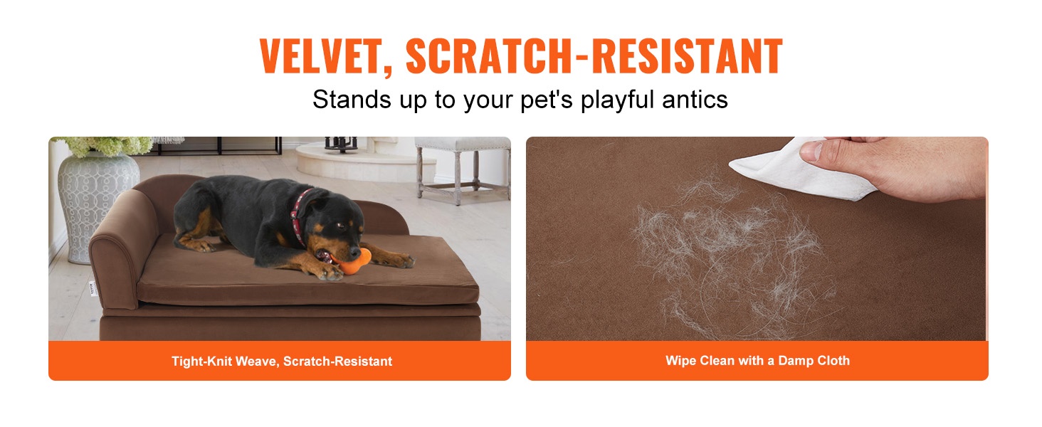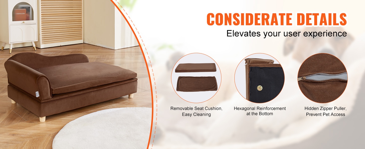 Noin 2" korkeat jalat ja vahvistettu pohja parantavat vakautta ja ilmanvaihtoa sohvan alla. Irrotettava istuinpehmuste helpottaa puhtaanapitoa ja tekee arjesta käytännöllisempää sekä lemmikille että omistajalle.
