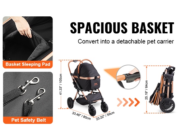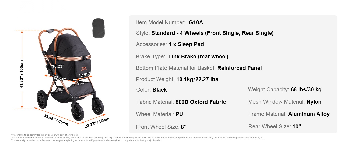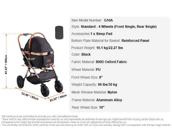 Nämä lemmikkien rattaat on suunniteltu koirien ja kissojen turvalliseen ja mukavaan matkustamiseen. Vahva seosrunko kestää enintään 35 lbs/16 kg painon, ja jauhemaalaus suojaa ruosteelta ja pidentää käyttöikää. Jokaisesta ulkoilusta tulee miellyttävämpi sekä omistajalle että lemmikille.
