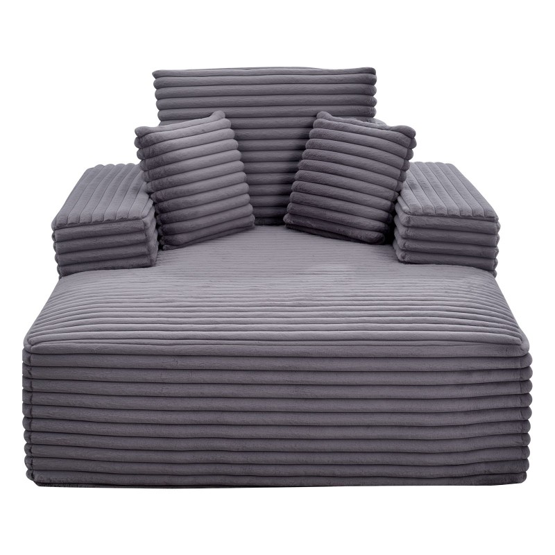 Tilava, pehmeä ja ergonominen lepotuoli paksulla korkearesilienssisienellä ja joustoilla. Raidallinen keinoturkisverhoilu, heittotyynyt, valmiina käyttöön, kestävä rakenne, sopii olohuoneeseen, makuuhuoneeseen tai lukunurkkaan. Mitat 1380×1500×700 mm, paino 39.5 kg.
