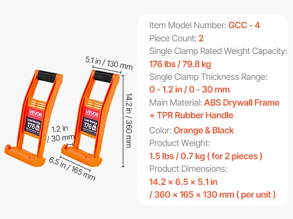 Tämä kahden levynkantajan sarja sopii levyjen siirtämiseen, joiden paksuus on enintään 1.2 in / 30 mm. Yksi kantaja kestää jopa 176 lbs / 79.8 kg kuorman, joten se toimii hyvin sekä yksin työskenneltäessä että parityöskentelyssä.