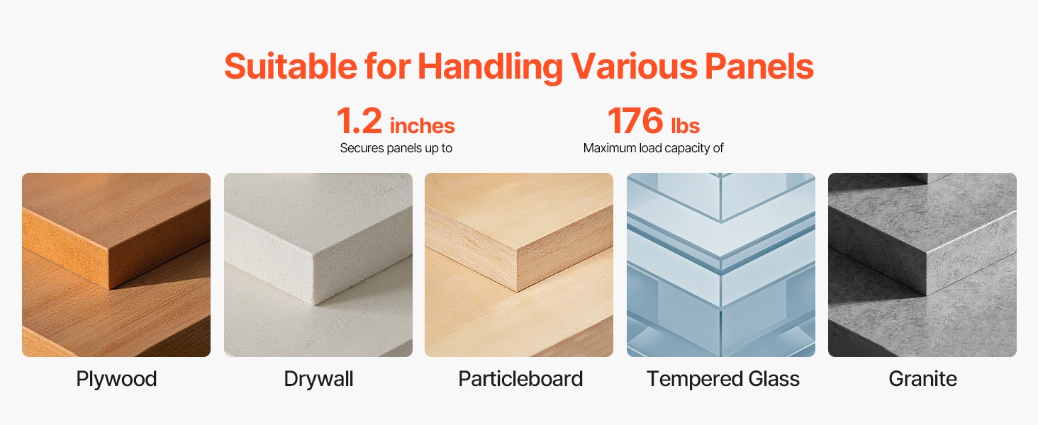 Kantajat soveltuvat esimerkiksi vanerille, kipsilevyille, lastulevylle, karkaistulle lasille ja graniitille – materiaaleille, joiden paino on enintään 176 lbs / 79.8 kg ja paksuus enintään 1.2 in / 30 mm. Käytännöllinen apuväline monenlaisiin rakennus- ja remonttikohteisiin.