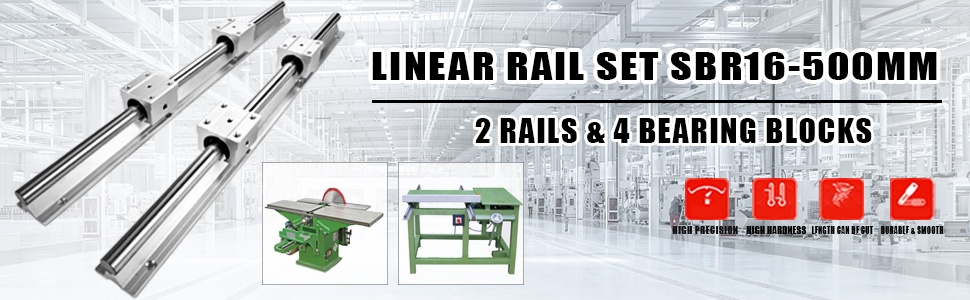 Sarja sisältää 2 kpl 500mm SBR16-kiskoakselia ja 4 kpl SBR16UU-laakerivaunua. Rakenne on korroosionkestävä ja kulutusta kestävä, mikä sopii jatkuvaan käyttöön CNC- ja automaatiolaitteissa.