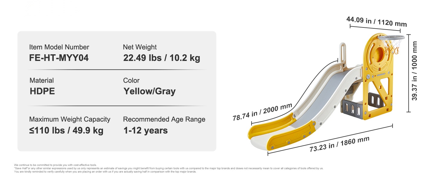 - Liukumäen pituus: 3.5 ft / 106.7 cm