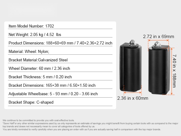 Liukuportin rullasarja 146 mm kumipyörät teräskannatin 600 paunaa sopii 32–50 mm runkoihin