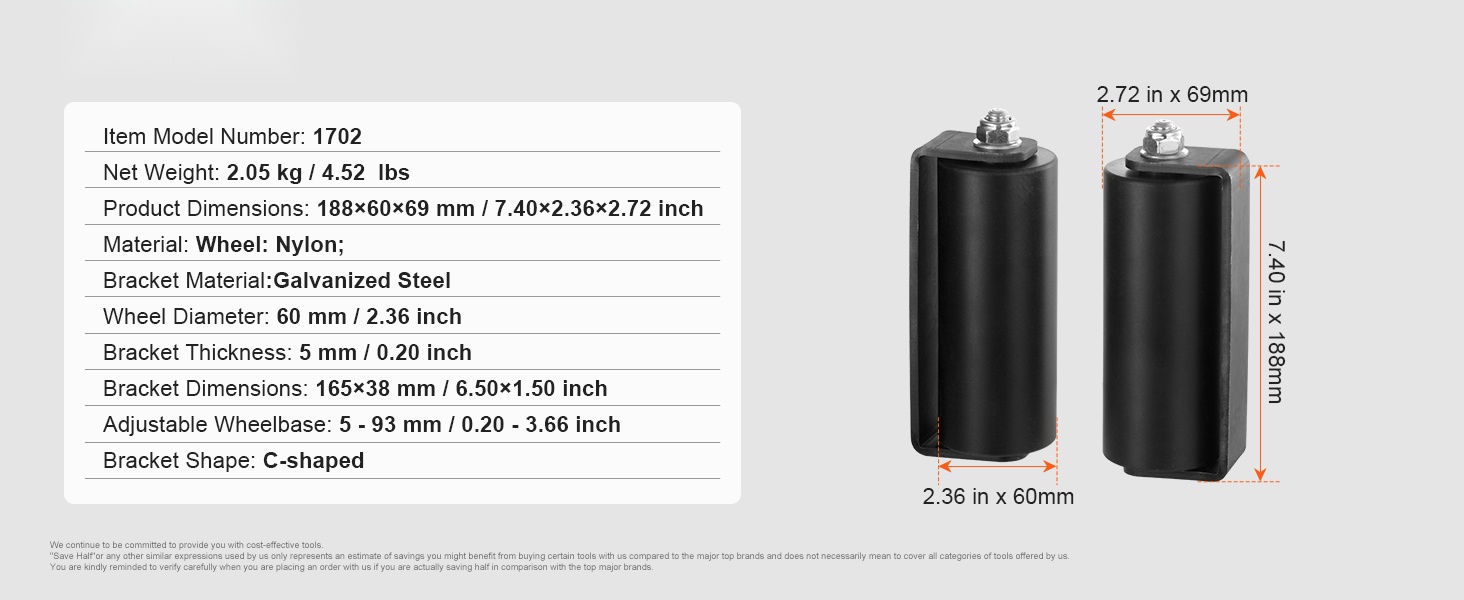 Tämä raskaan käytön liukuportin rullasarja helpottaa liukuovien ja -porttien sulavaa liikkumista. Teräskannattimeen kiinnitetyt kestävät kumipyörät kantavat enintään 600 lbs kuorman, ja hammastettu rakenne parantaa pitoa ja vakautta. Sarja sopii useisiin runkoihin ja kiskoihin, ja sen asennus on nopeaa.