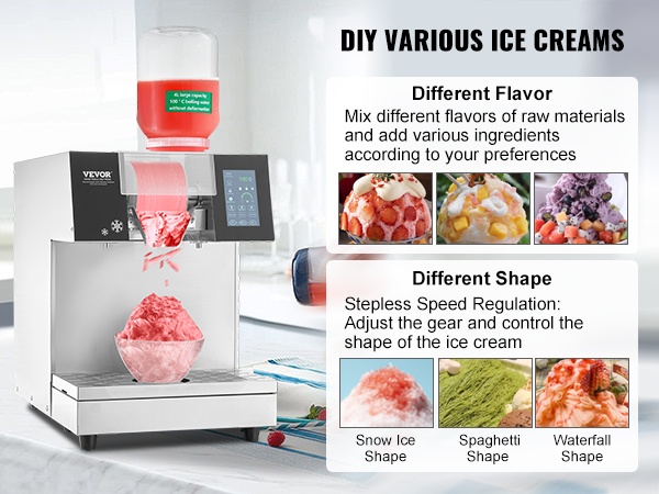 Säätöjen avulla voi valmistaa lumihiutalejäätä, nauhamaista ”nuudelijäätä” sekä muita muotoja ja makuja. Portaaton nopeudensäätö helpottaa rakenteen hienosäätöä eri juomiin ja jälkiruokiin.