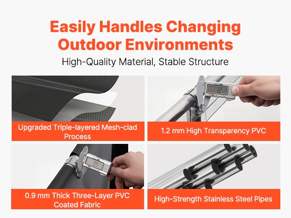 - Paksu PVC-kangas: kulutusta kestävä, tiivis ja vuotoja ehkäisevä materiaali