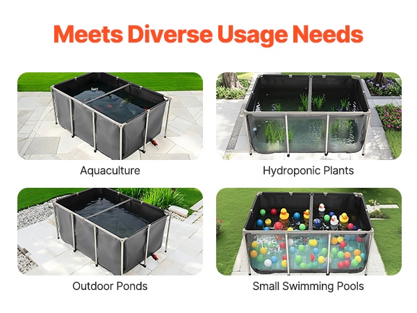 Monikäyttöinen PVC-allas soveltuu vesiviljelyyn, ulkoaltaaksi, koialtaaksi tai vaikkapa pieneen uima-/leikkialtaaseen. Se mukautuu erilaisiin käyttötarkoituksiin ja tarjoaa helpon ratkaisun veden varastointiin ja kasteluun.