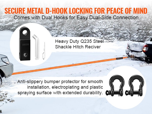 - 2 D-rengassakkelia ja vetokoukun sovitin helppoon kiinnitykseen eri ajoneuvoihin.