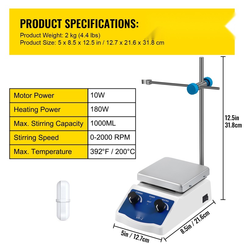 SH-2-magneettisekoittimessa on ruostumattomasta teräksestä valmistettu kuumalevy ja PTFE-pinnoitettu sekoitustanko, jotka mahdollistavat nopean ja tasaisen lämmityksen sekä vakaan sekoituksen. Tehokkaan tasavirtamoottorin ansiosta sekoitusnopeutta voidaan säätää jopa arvoon 2000 kierrosta/min eri käyttötarpeisiin. Kaksi erillistä säätönuppia helpottavat lämpötilan ja nopeuden tarkkaa hallintaa. Laite soveltuu esimerkiksi tieteelliseen tutkimukseen, laboratoriokäyttöön, opetuskäyttöön ja teollisiin prosesseihin.