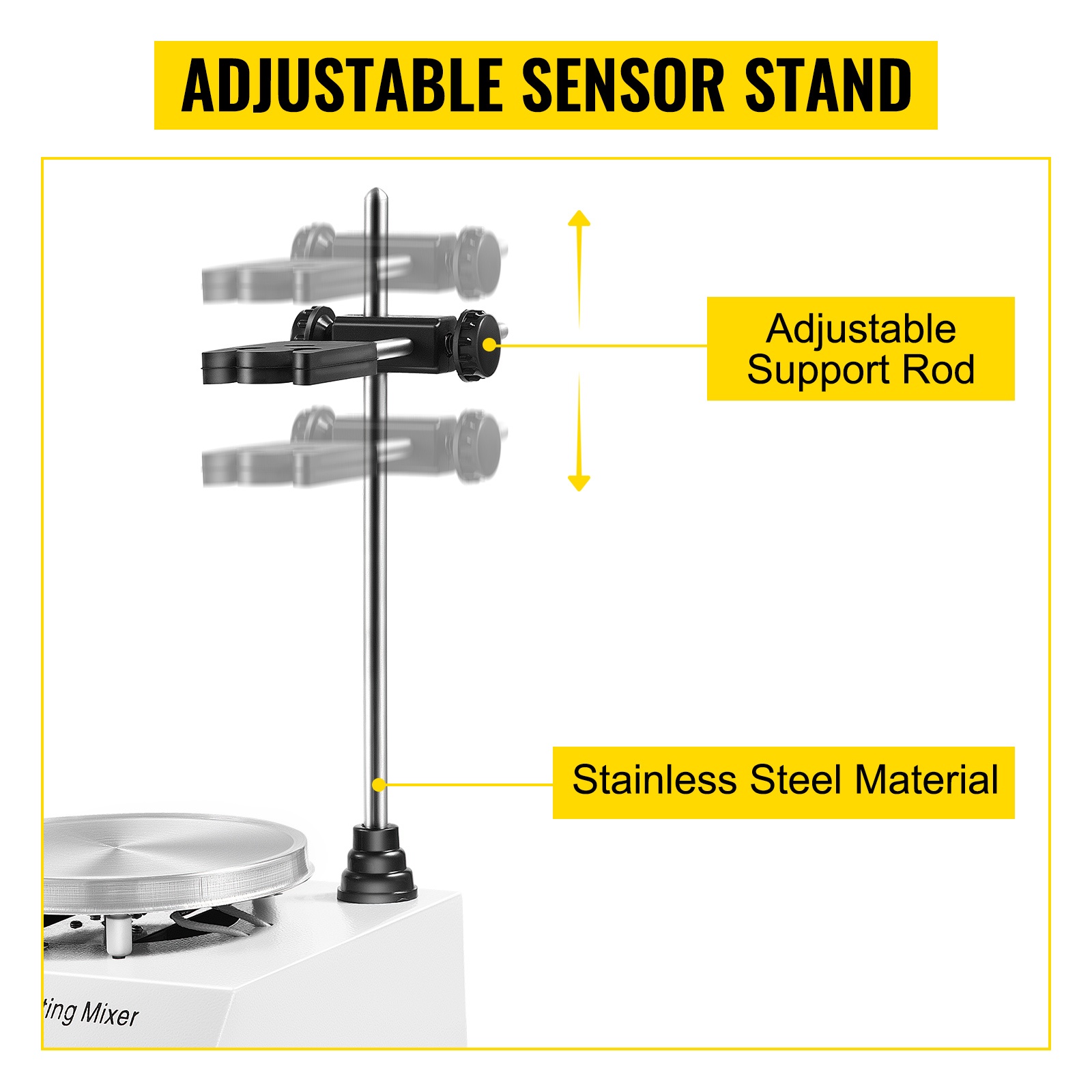 Mukana tuleva säädettävä teline pitää lämpötila-anturin oikeassa kohdassa, mikä mahdollistaa lämpötilan tarkan seurannan ja säädön. Anturin korkeutta ja sijaintia voidaan muuttaa käytettävän beakerin koon mukaan.