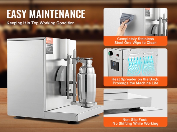 Vilkkaassa juomabaarissa tai maitoteekahvilassa tehokas shakeri helpottaa työtä ja pitää maut tasalaatuisina. Kone ravistaa juoman tasaisesti jopa noin 10 sekunnissa, ja hiljainen käyntiääni tekee työympäristöstä miellyttävän.