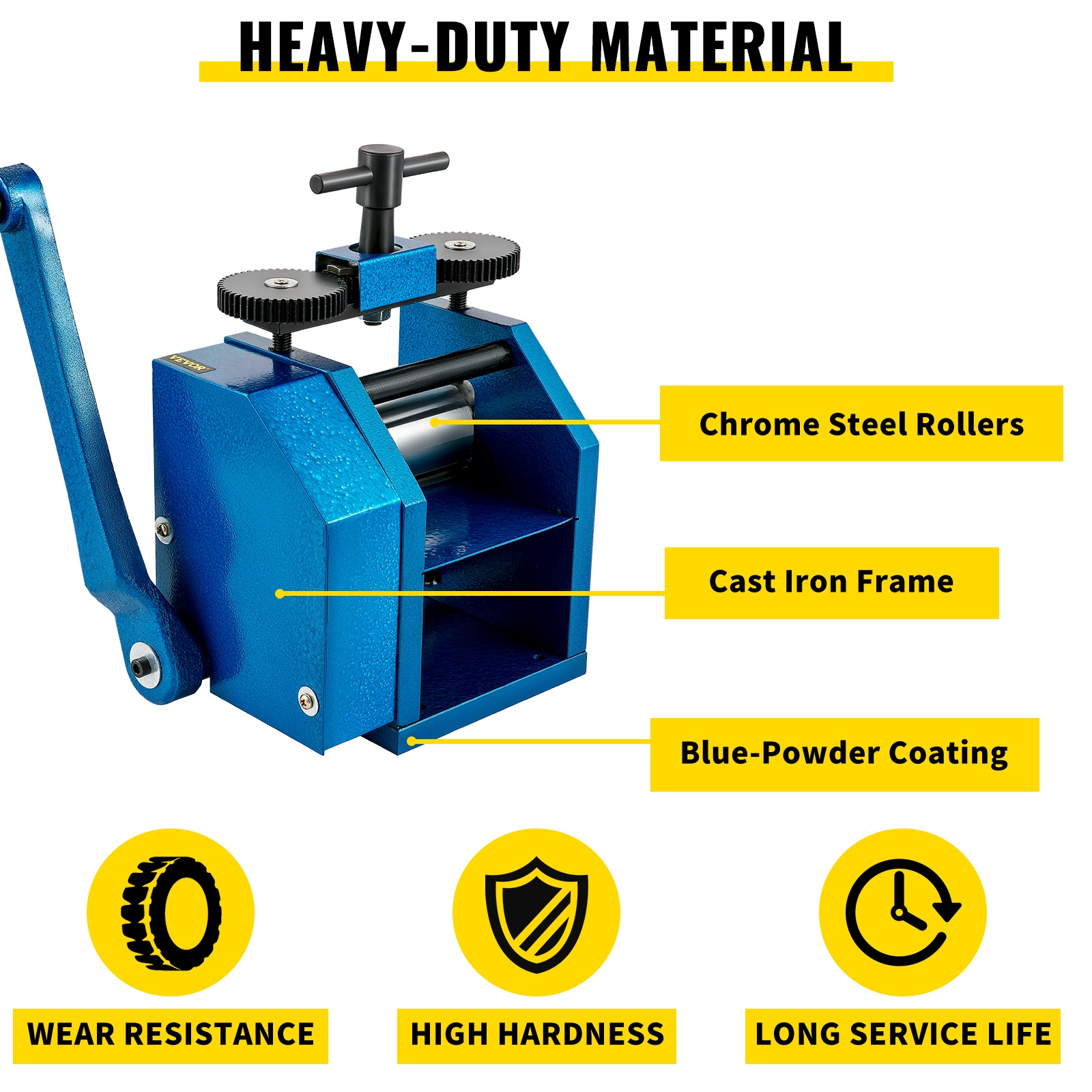 Manuaalinen koruvalssain 112 mm valurautarunko kromiteräsvalssit nelitoiminen 0,1–7 mm