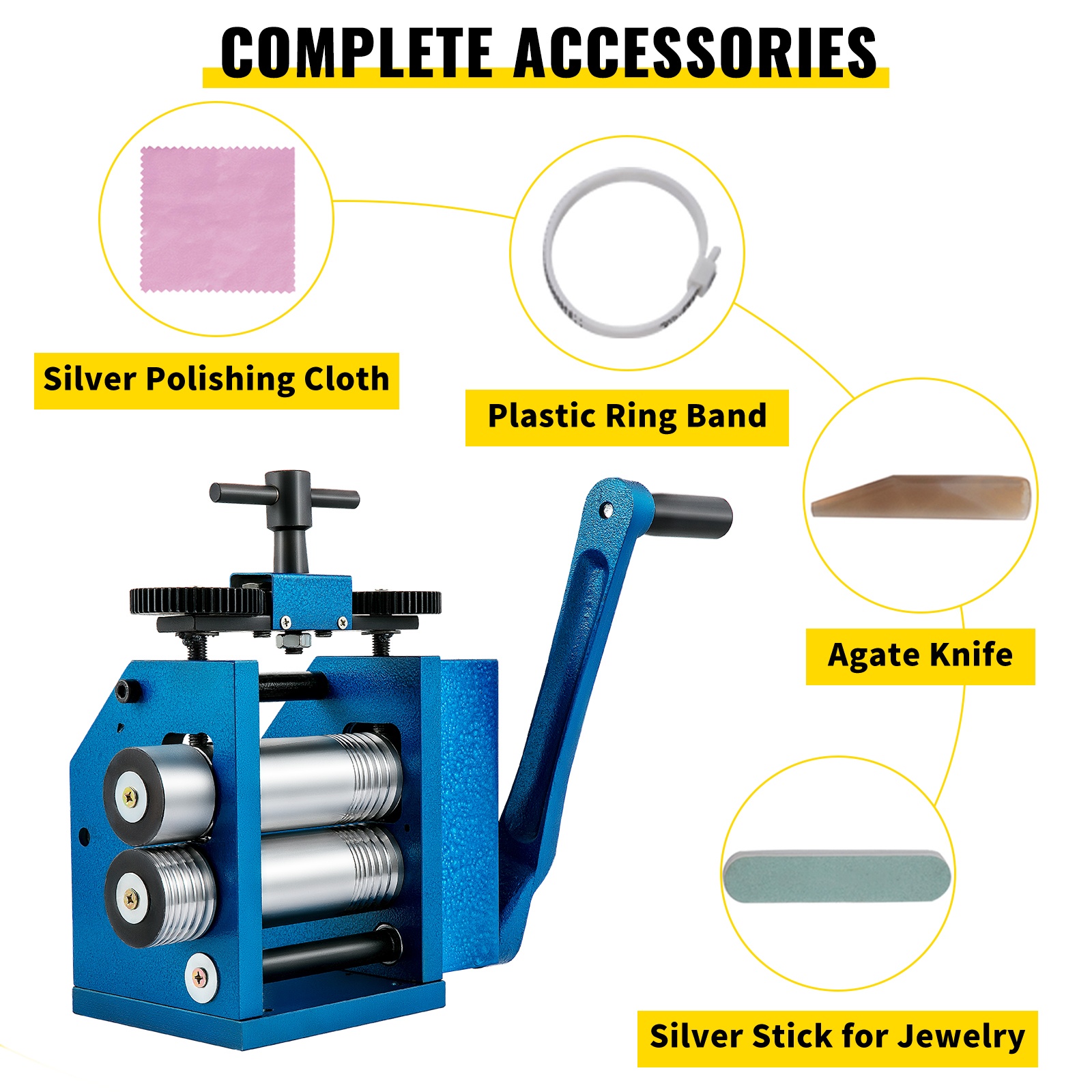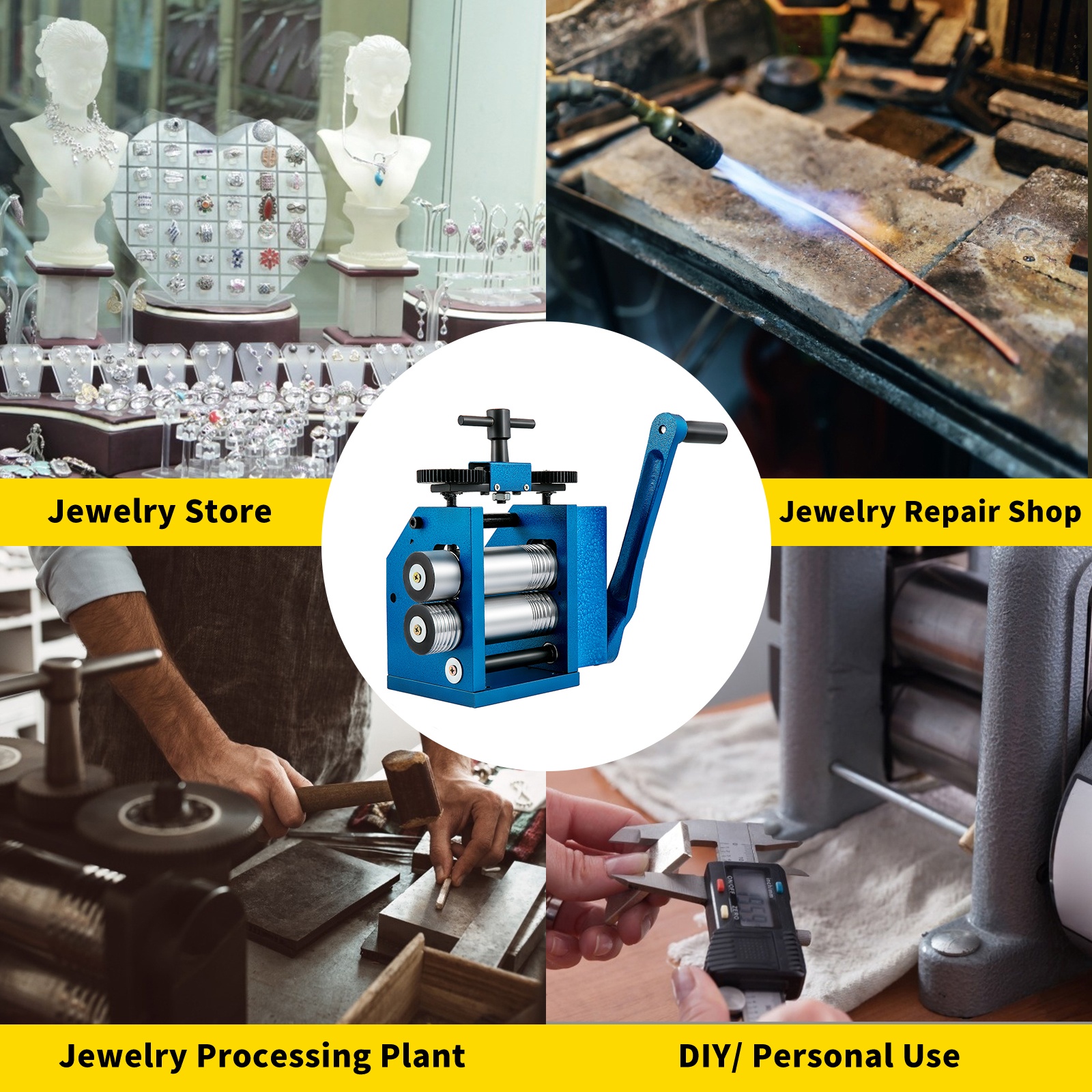 Yhdistelmävalssain on tarkoitettu metallin kylmävalssaukseen, jotta saat ohuempia levyjä ja lankoja sekä tasalaatuisen paksuuden. Säädettävän puristuspaksuuden, pienennetyn välityssuhteen ja käytännöllisten tarvikkeiden ansiosta laite sopii hyvin korujen valmistukseen ja muuhun pikkutarkkaan metallityöhön.