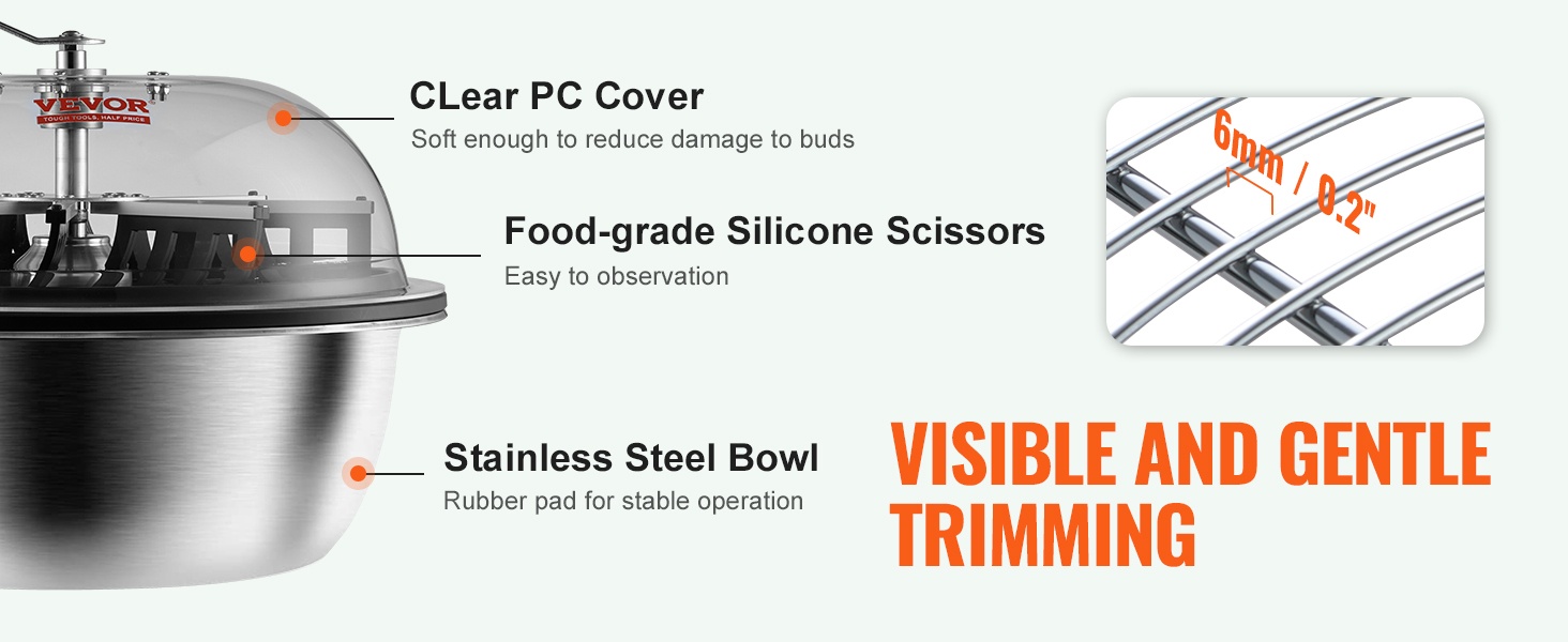 Manuaalinen lehtitrimmeri 16 tuumaa ruostumaton teräs läpinäkyvällä kannella käsisaksilla nuppujen ja kukkien