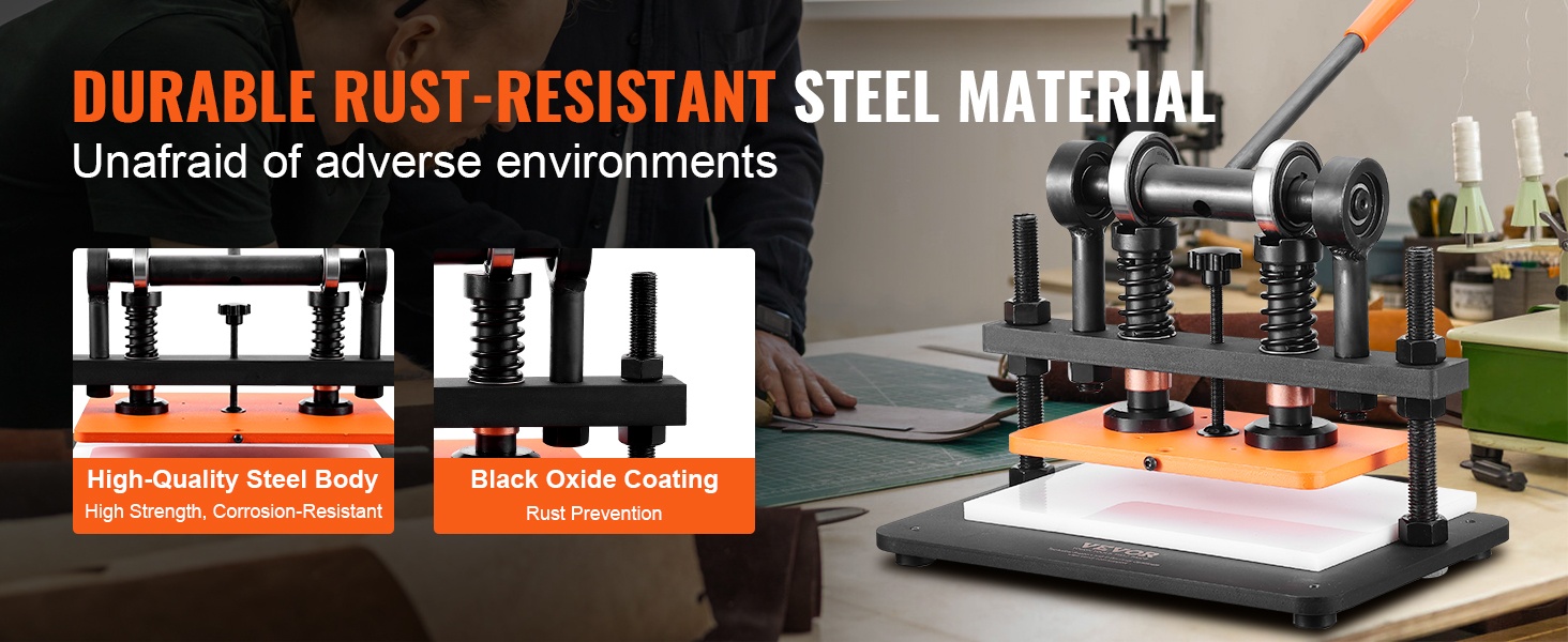 Manuaalinen nahkaleikkuri ja -prässi erilaisille materiaaleille. Suuri prässilevy ja säädettävä puristussyvyys tekevät laitteesta sopivan sekä ohuille että paksummille nahka-, vaahto- ja muovimateriaaleille.