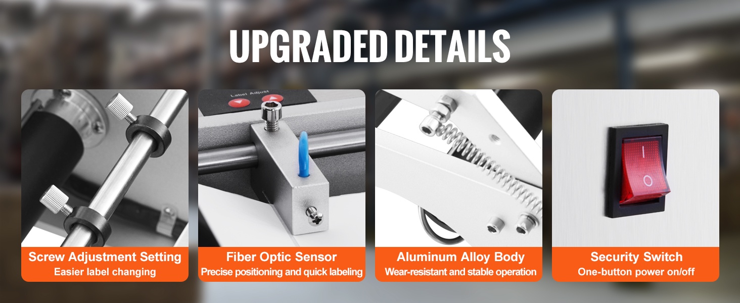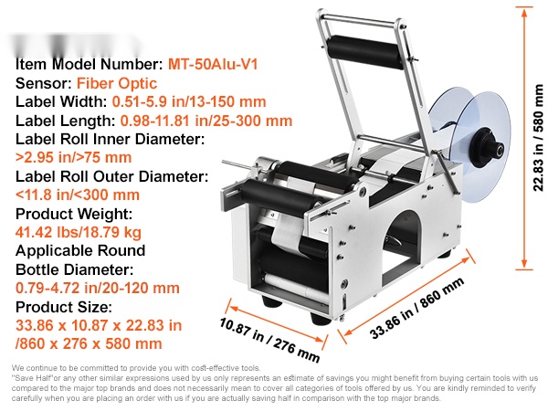 Etäisyyksiä ja pullojen kokoa voidaan säätää, joten kone käy monenkokoisille pyöreille pulloille. Yksi käyttäjä pystyy hoitamaan etiketöinnin, kapasiteetin ollessa noin 15–20 etikettiä minuutissa.
