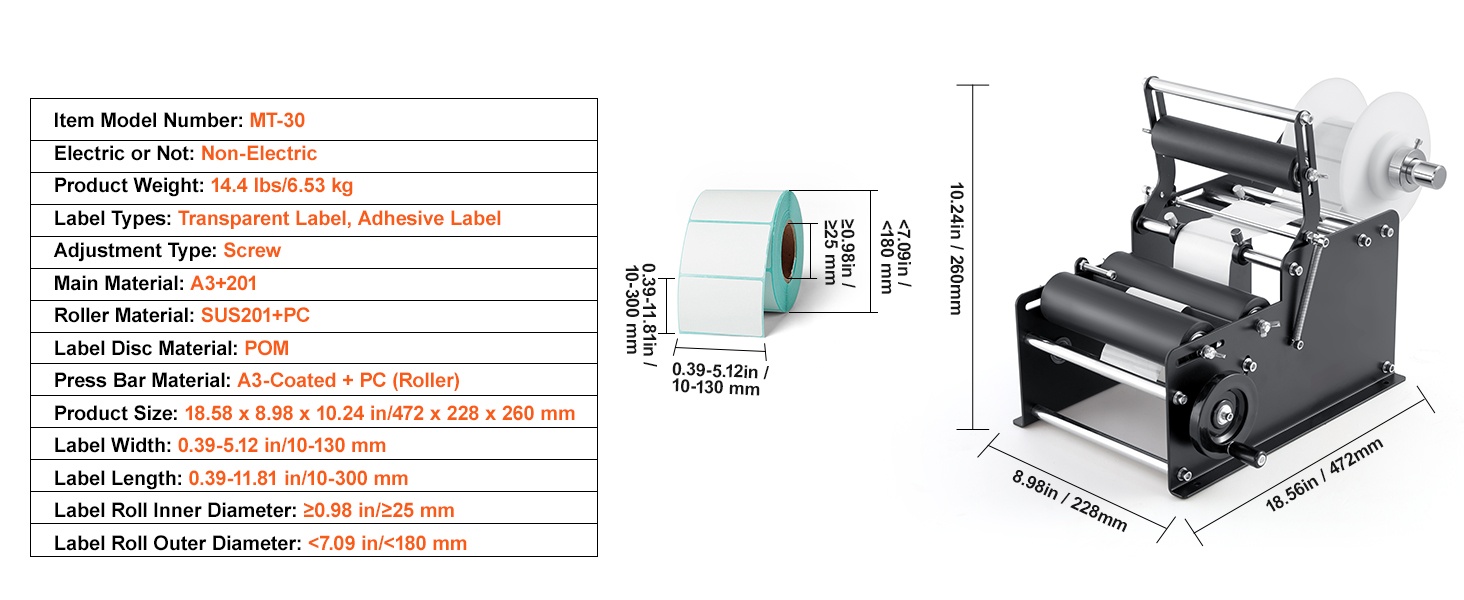 Runko on valmistettu ruostumattomasta teräksestä ja muista kestävistä materiaaleista, joten laite soveltuu pitkäaikaiseen käyttöön. Käsikäyttöinen kampi ja kumirulla auttavat kiinnittämään etiketit tasaisesti ilman ryppyjä ja ilmakuplia.