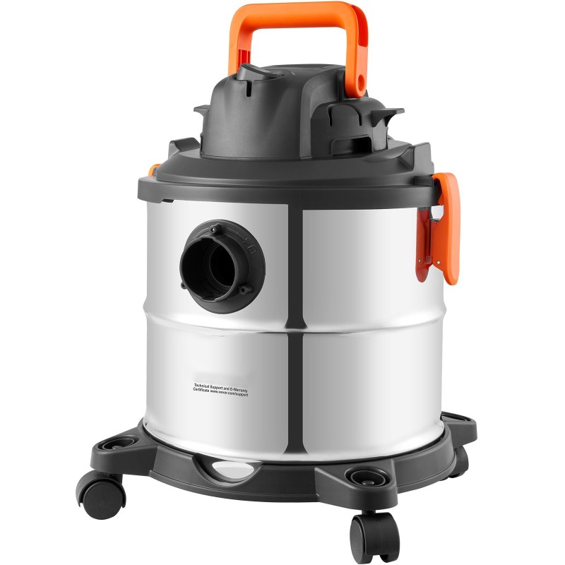 Märkä-kuivaimuri ruostumattomasta teräksestä 20 l säiliöllä pyörillä ja suulakkeilla