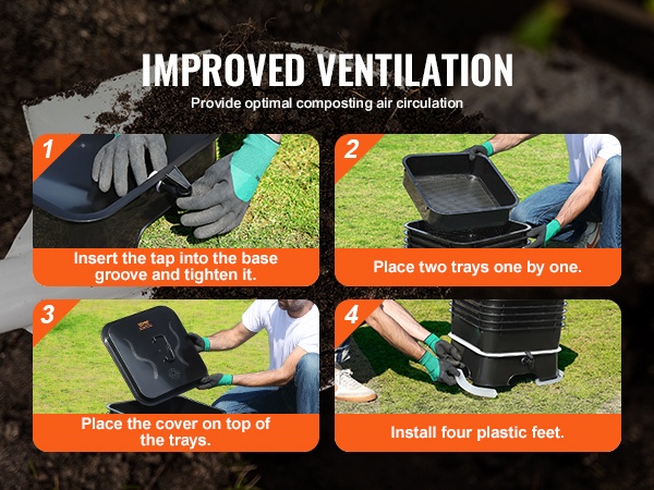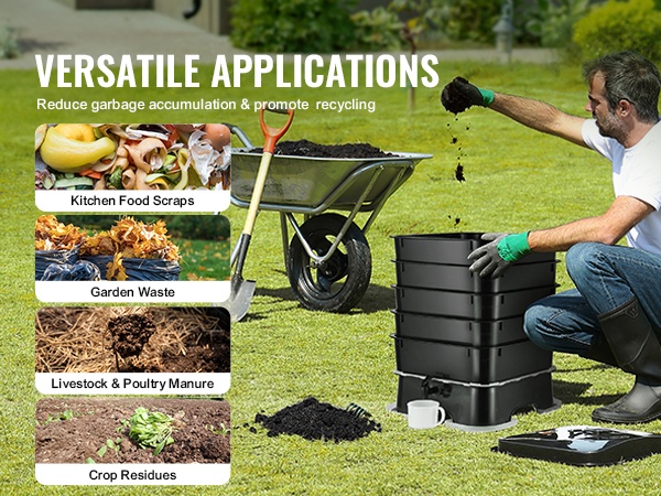 Tällä kompostorilla voit käsitellä kotitalouden biojätettä, puutarhajätettä, karjan ja siipikarjan lantaa, kasvijätteitä ja muuta orgaanista materiaalia. Se auttaa vähentämään kotitalousjätteen määrää ja tekee ravinteikkaan kompostin tuottamisesta vaivatonta.