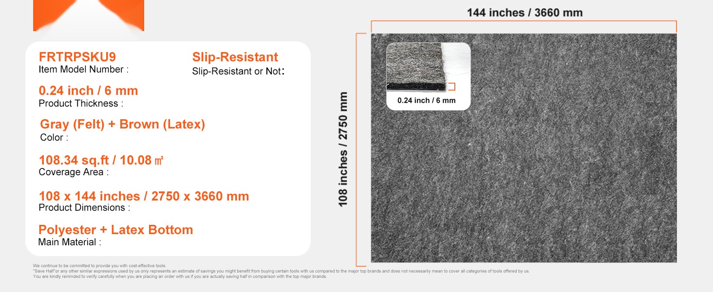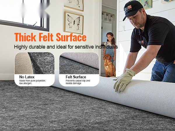 - Paksu, kestävä rakenne: polyesterihuopa + lateksipohja, paksuus 0.24 inches / 6 mm.