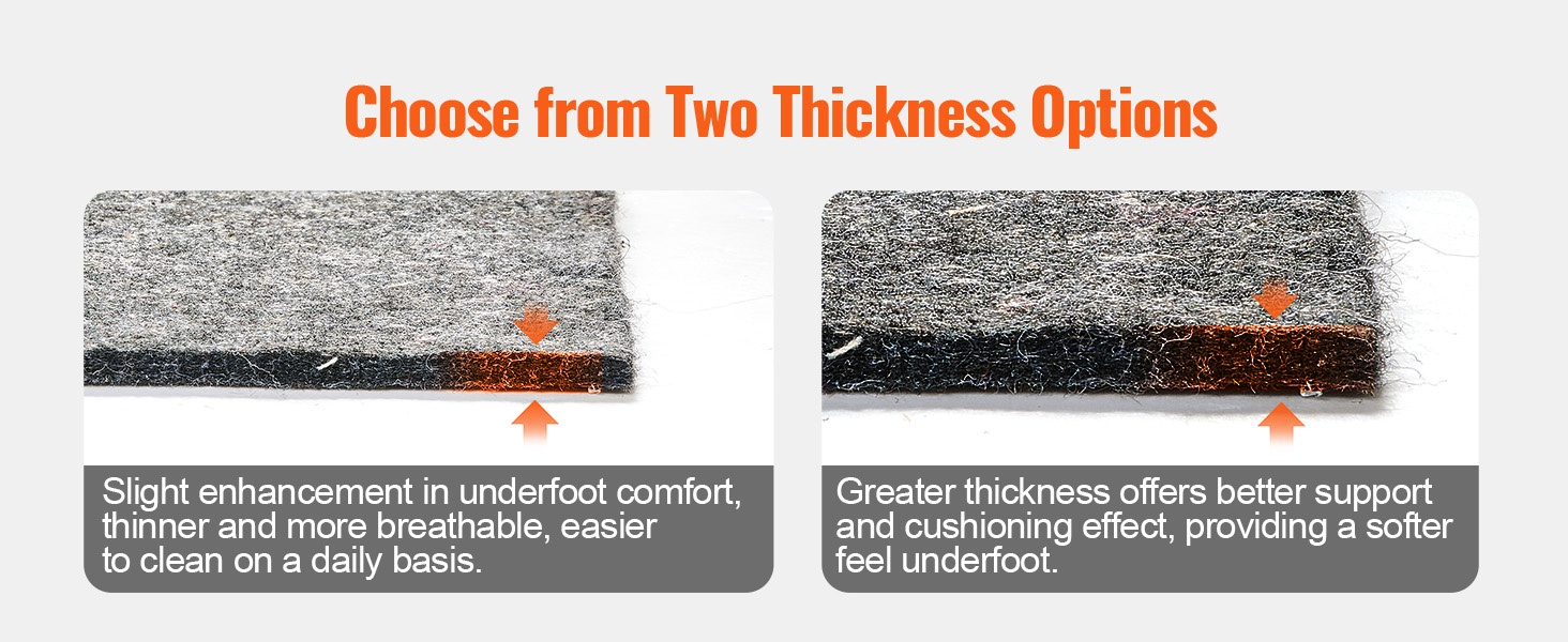 Voit valita kahdesta paksuudesta: 0.47'' tarjoaa erityisen pehmeän ja miellyttävän askeltuntuman, joka sopii hyvin herkille jaloille, kun taas 0.24'' on kevyempi, hengittävä ja korostaa liukuestoa.