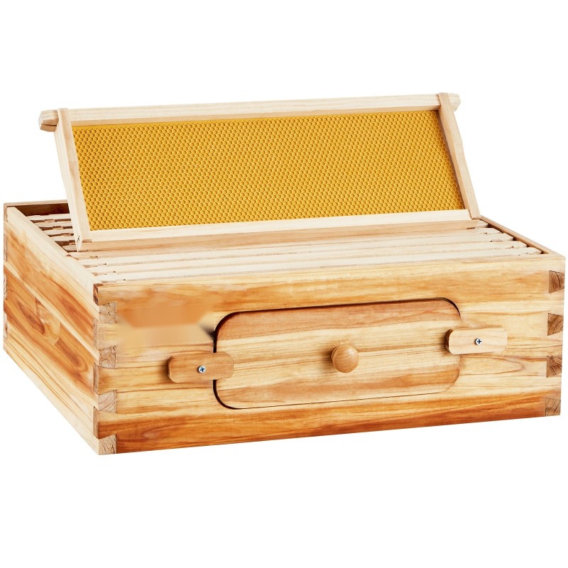 Mehiläispesän keskikokoinen Langstroth-laatikko 19 mm setripuuta 10 kehystä mehiläisvahakäsitelty akryyli-ikkunat