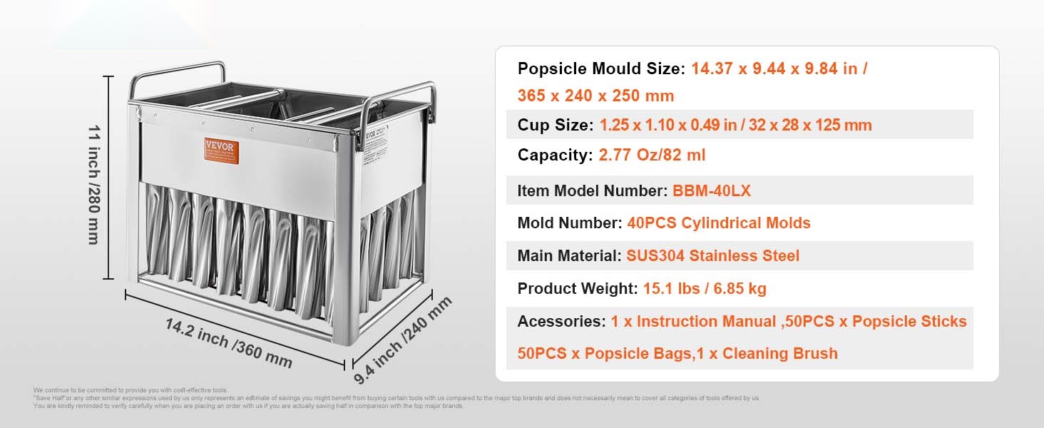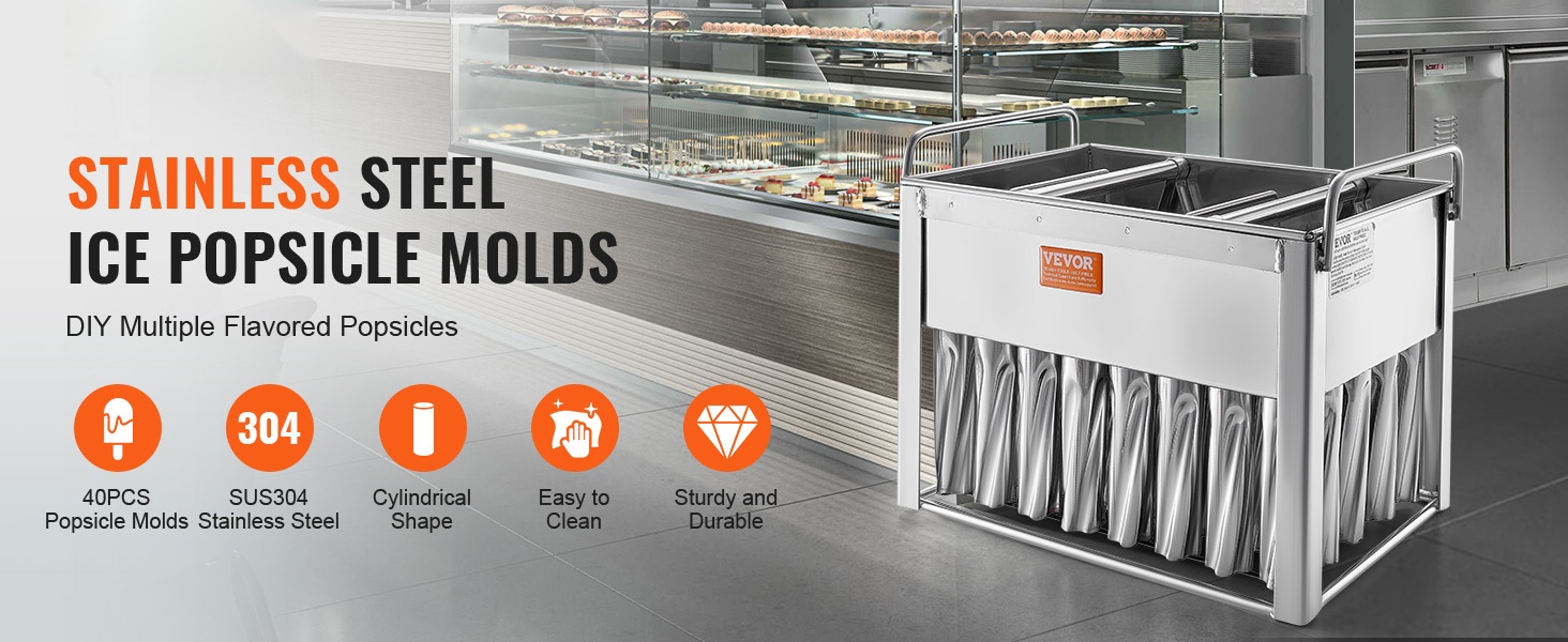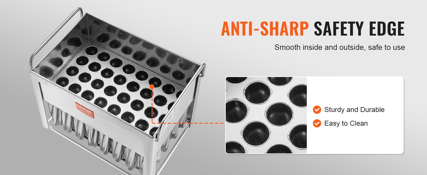 Tämä kaupalliseen käyttöön soveltuva mehujäämuottisarja on suunniteltu suurten erien valmistukseen. Pakkaus sisältää 40 kpl pyöreäkärkisiä mehujäämuotteja, joissa on kaksoisaukko. Elintarvikekäyttöön soveltuva SUS304-ruostumaton teräs varmistaa turvallisuuden, pitkän käyttöiän ja helpon irrotuksen.