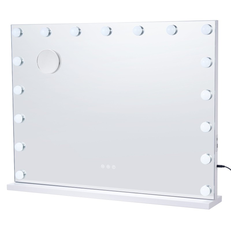 Tyylikäs Hollywood-peili valaistuksella helpottaa yksityiskohtaista meikkausta ja ihonhoitoa. Neliönmallinen peili tarjoaa tasaisen valon, säädettävän kirkkauden ja mukana tulevan 5x suurentavan lisäpeilin.