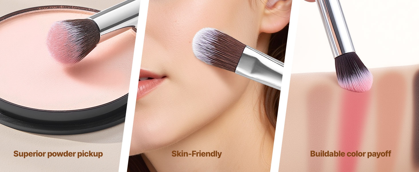 Meikkivoide- ja luomivärin häivytykseen suunnitellut siveltimet sopivat sekä aloittelijoille että kokeneille meikkaajille. Hyvä tuotteen tarttuvuus, erittäin pehmeät harjakset ja kerrostettava värin intensiteetti auttavat luomaan huomaamattomia rajauksia ja kauniin, hehkuvan lopputuloksen.