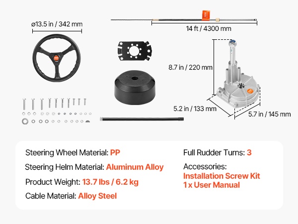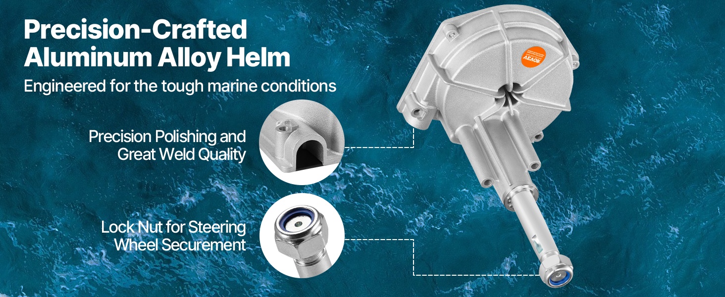 Tämä mekaaninen veneen ohjausjärjestelmä helpottaa perämoottorilla varustetun veneen hallintaa ja vähentää kääntämiseen tarvittavaa voimaa. Järjestelmä tarjoaa tarkan ohjauksen ja rauhallisen tuntuman ajoon erilaisissa olosuhteissa.