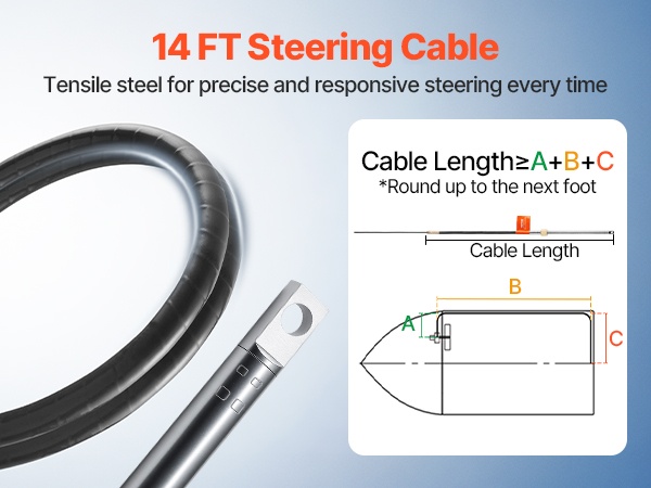 - Ohjauskaapeli pituudeltaan 16 jalkaa vakaisiin liikkeisiin